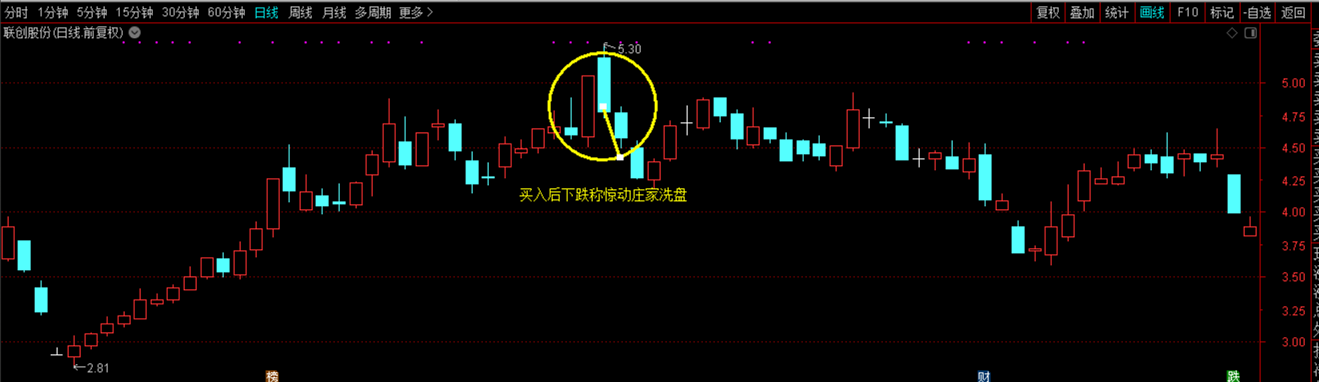 190326,买入后第二天,次股高开低走。其后两天修了两条阴线。此时,自称“张教授”的大师说学生买入太多太急,抢筹惊动了庄家所致。