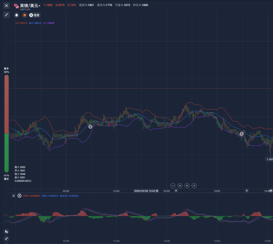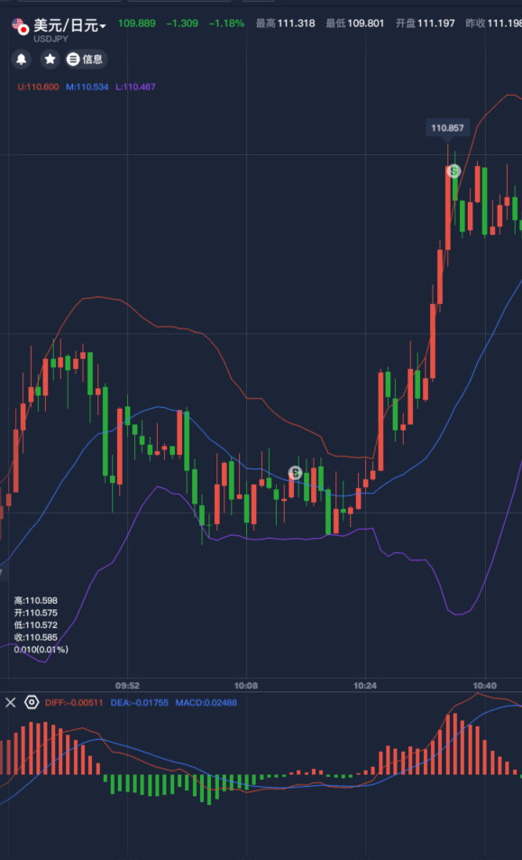 总结,今天做单盈利了一百多,这周的目标是求稳求小赢,所以下单的手数都不会超过0.5标准手,短线。关于做单方法,进出场的个人判断理由,上面已经提及,在没有寻求到更多的指标辅助的目前,可能我还是主要借助MACD指标跟布林带指标,已经使用了两三周了。