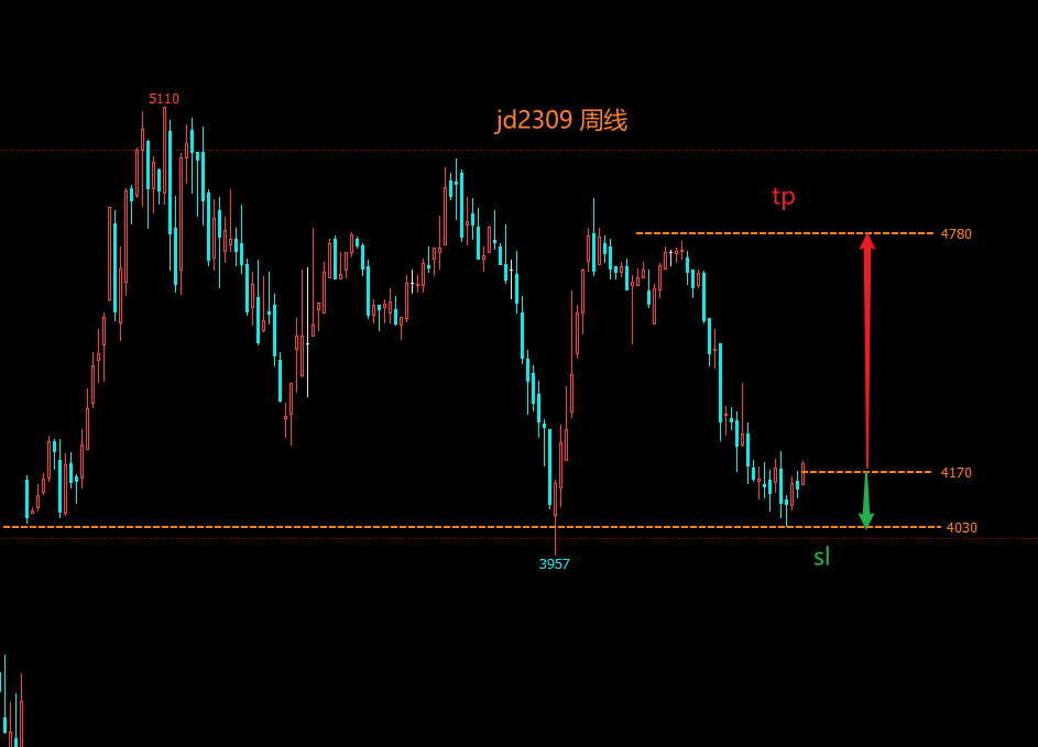 上周一直做多菜粕,主力一直在突破后扫盘,做日内的应该拿不住。周一接近涨停位置平仓。周线上看,从底部到颈线位置,按照1:1测算快到了,而且是前期的支压转换位置。后续关注鸡蛋和澳元。