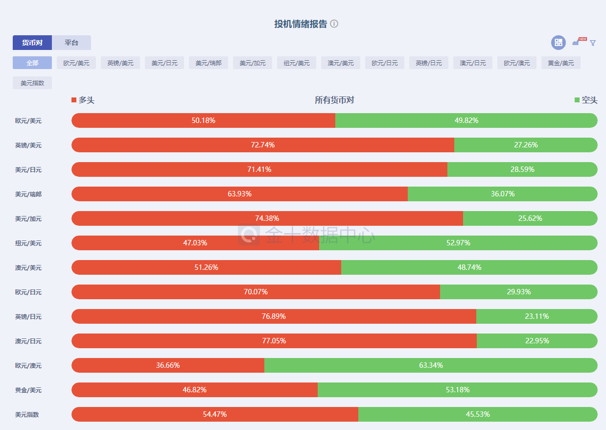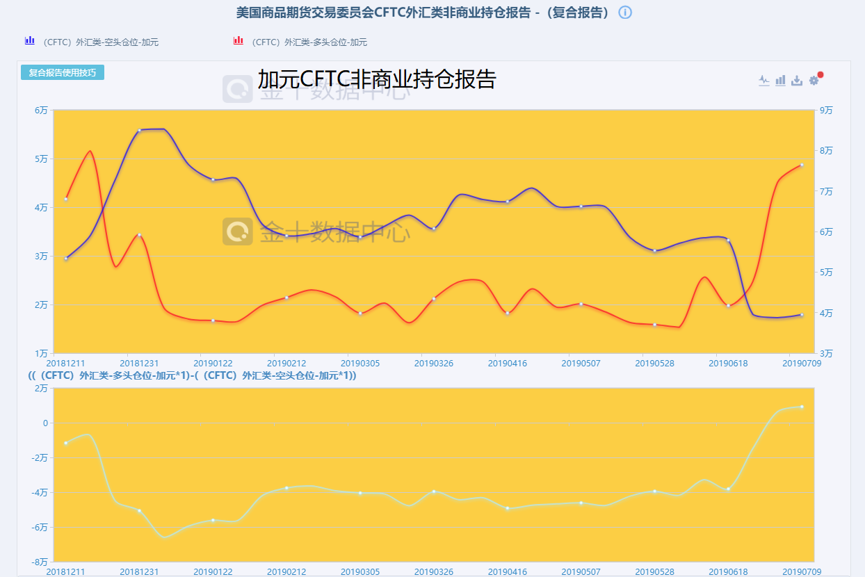做空加元的投资者也有所减少。但减少的幅度非常小。高达74%的数值,显示加元依然有继续升值的倾向。