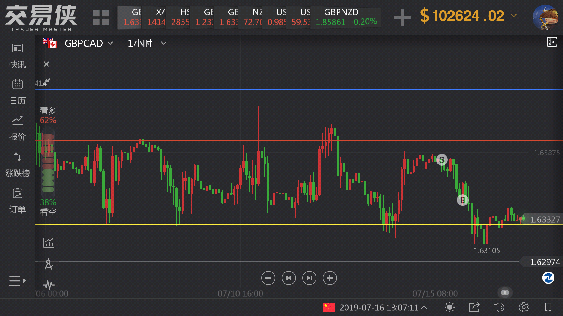 近期在镑加上做空,获得了不错的收益。我们给小时图震荡区间的底部和顶部画出阻力线。今天做空位置最好肯定是在红线位置。而现在的汇价,正在黄线第1个做空位置,这个位置有点低,追空有一定风险。还是等一等,到欧洲盘再说吧。