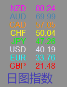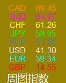 而做空的货币毫无疑问还是英镑,日图与周图的指数没有太大变化,一直保持最弱的货币状态。