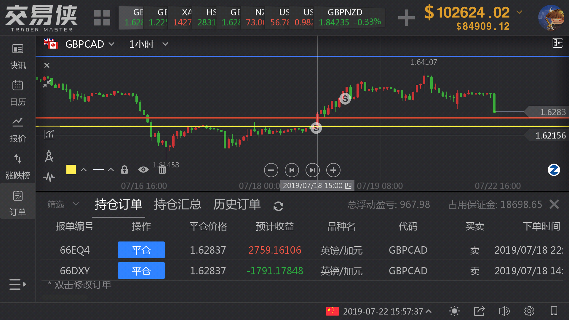上周镑加反弹幅度比较大,第1张单,做空点位比较激进,第2张单加仓仓位部署太重。导致被动被套至今日。由于英镑基本面的影响将导致无序波动,所以至上周末开始,打算放弃做空英镑。今天好不容易有机会盈亏相抵之后还有小赚,先出场为妙,准备部署下一次交易。