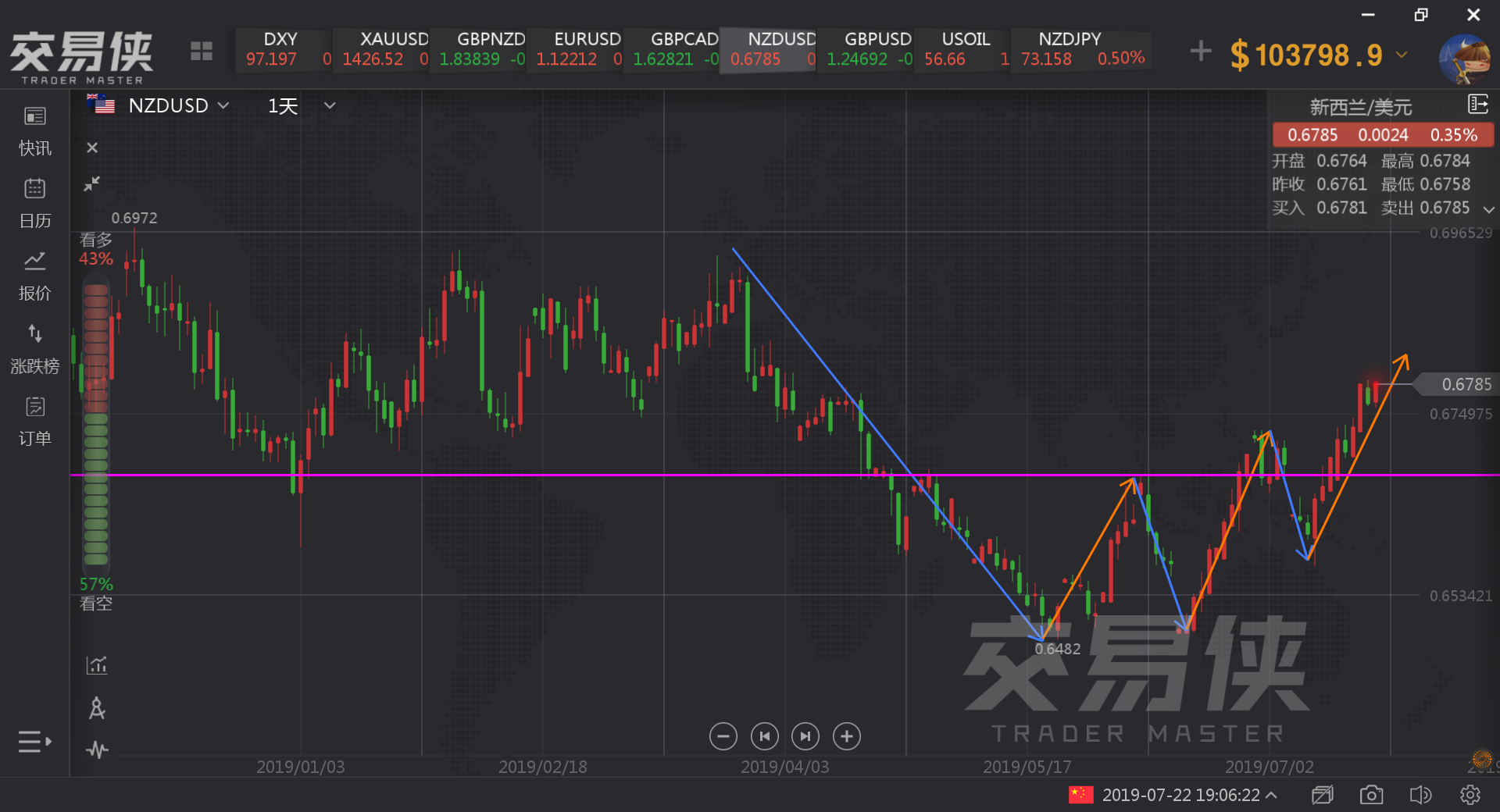 同时做空新西兰元的投资者首次超过了60%,为我们做多新西兰元提供了数据支撑。