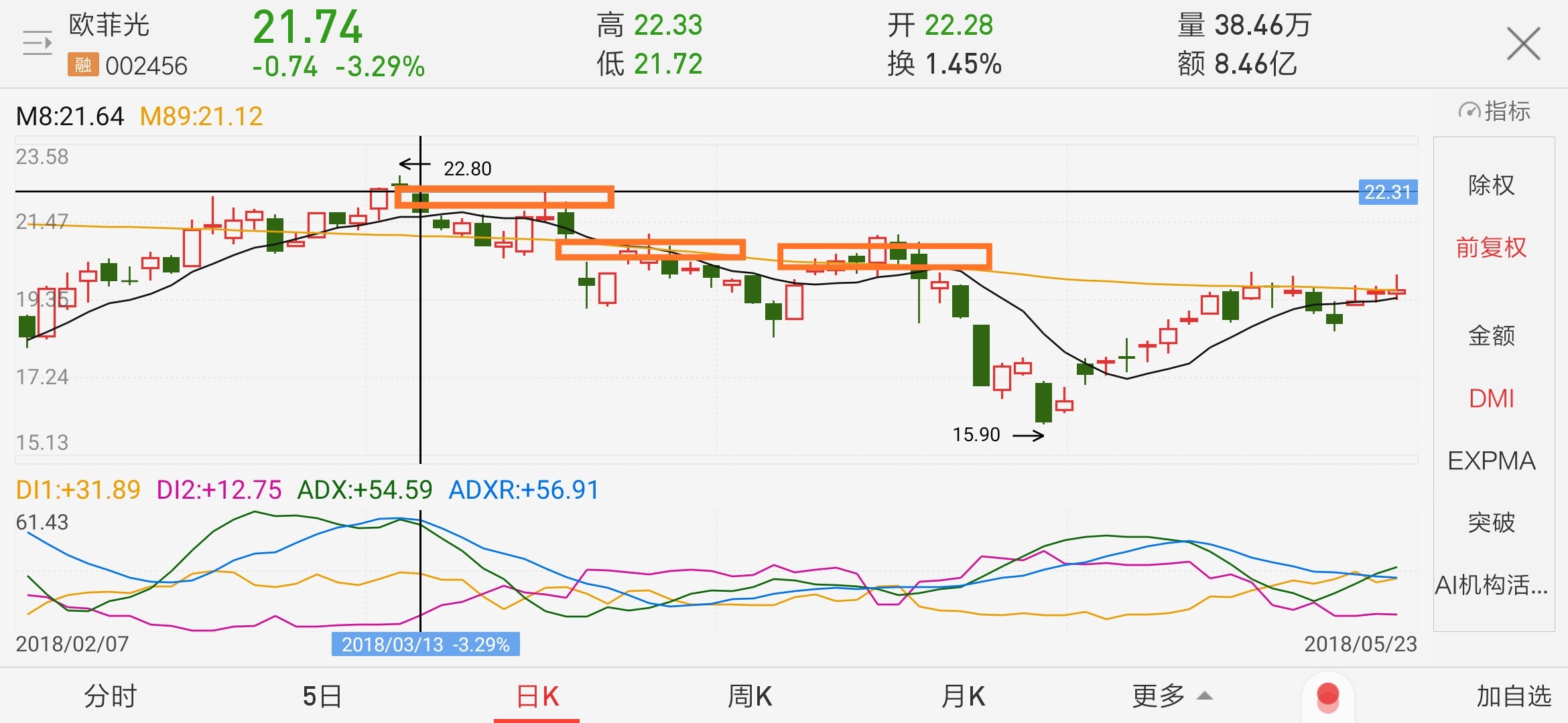 今天我运用了结构的方法进行股票实操复盘欧菲光是我最近看比较看好的股票,他是一家国内领先的精密光电薄膜元器件制造商。