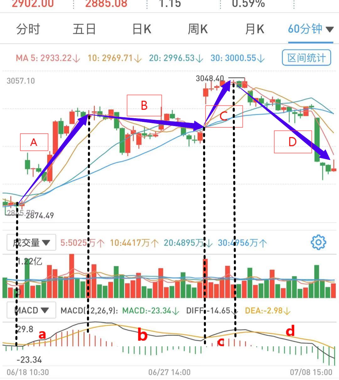 今天是第十个话题用我们昨天选择的方式去复盘以往的行情。一转眼就到了第十个话题,回首往事,学习了很多,以前看股票都是看感觉,看的都是一些财务季度报表等一些无关紧要的东西,所以之前我买股票都是看运气的。现在学习了之后感触良多,懂得看K线。话不多说,进入正题。我昨天选了MACD技术指标作为最适和我的方法,接下来就我个人理解用MACD方法去复盘以往行情。