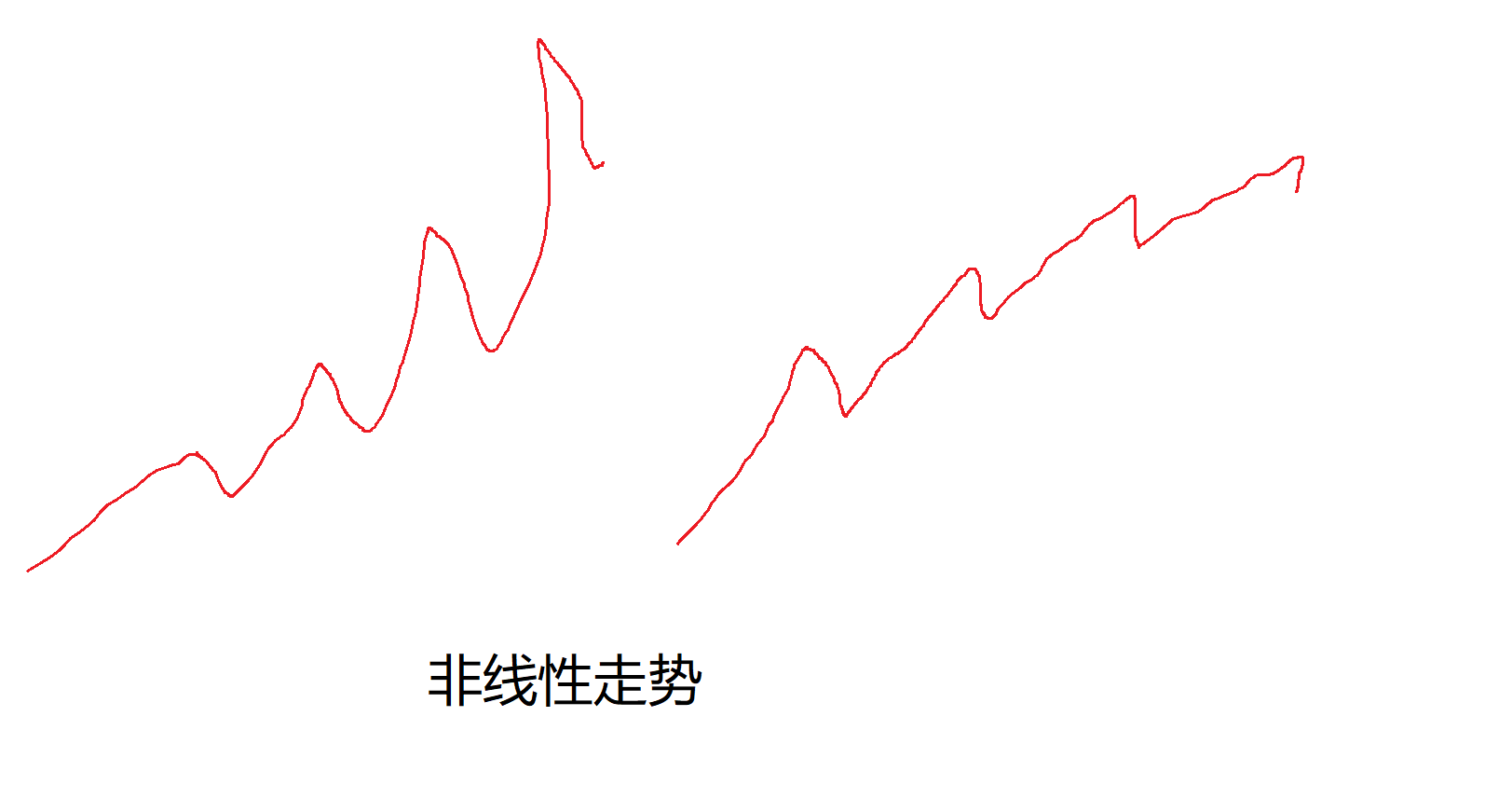 那么如果价格走出图中的非线性走势?根本不在一条线上?这时候你怎么话线也没用失效(这里的图我用平板画的)