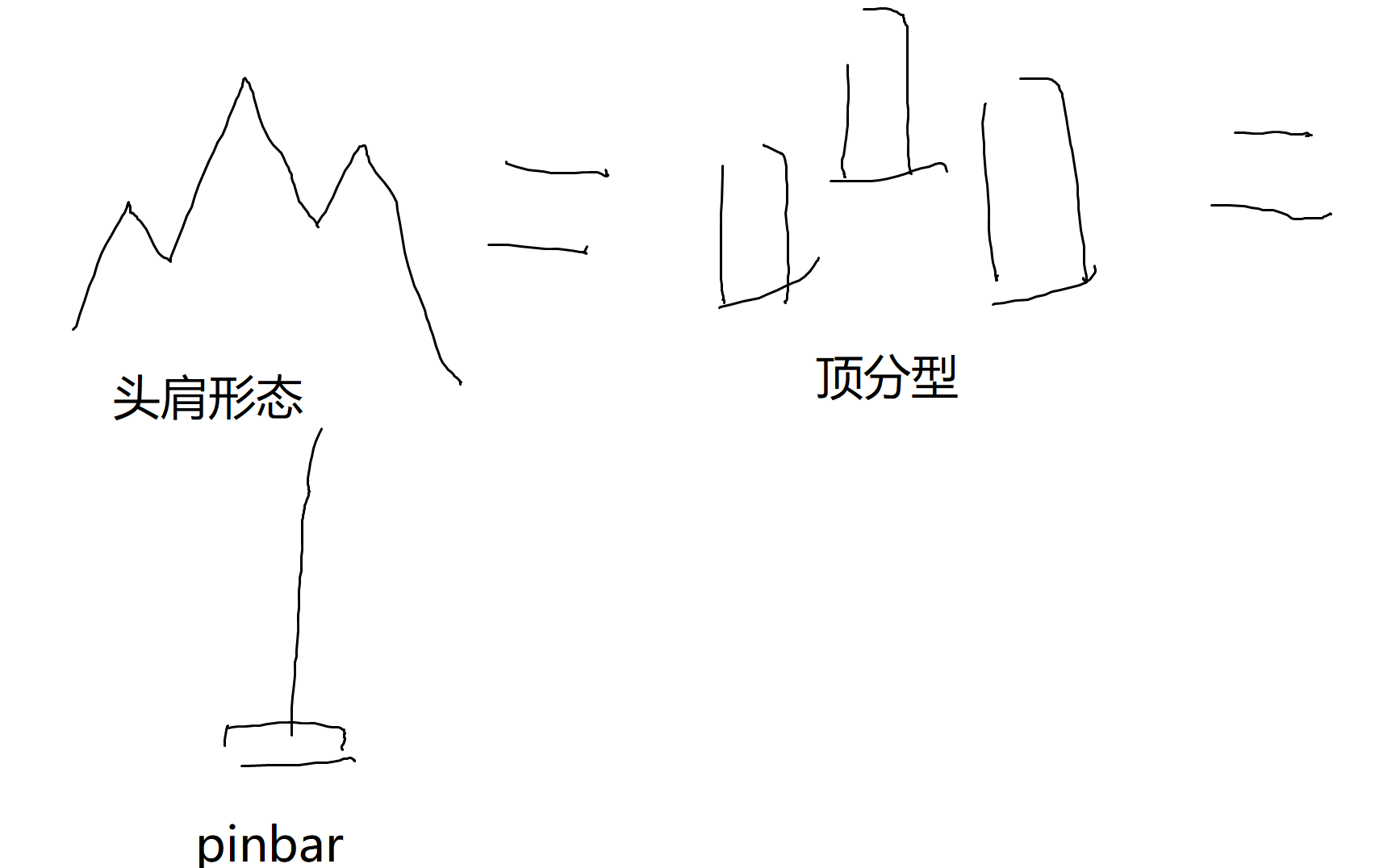 我之前也说过,头肩形态,顶底分型,pinbar这三个本质上是一样的东西。就是包含了一个次高(低),高(低),次高(低)的反转模式。3者是维度上的不同,从数十根K线到3根k线到单跟,就像点线面的区别。