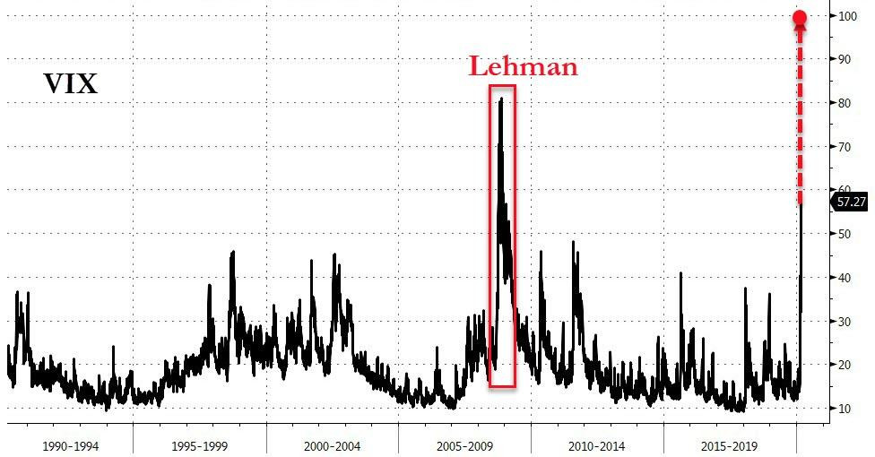 同时金银比刷出新高103,恐慌指数刷出新高75(两者在08年危机中是80和60)