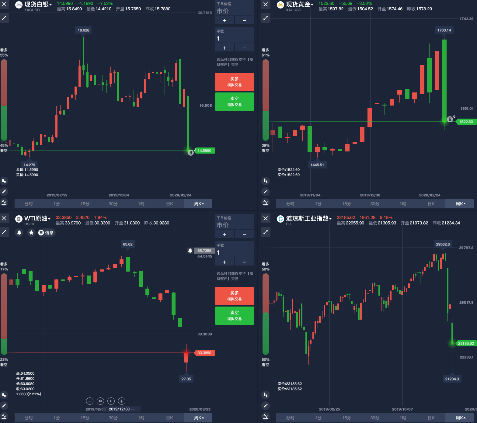 本周的基调大概为 原油增产+疫情扩散+着手政策,从恐慌到极度恐慌到有所平复。极度恐慌中,连黄金都成为了抛售的资产