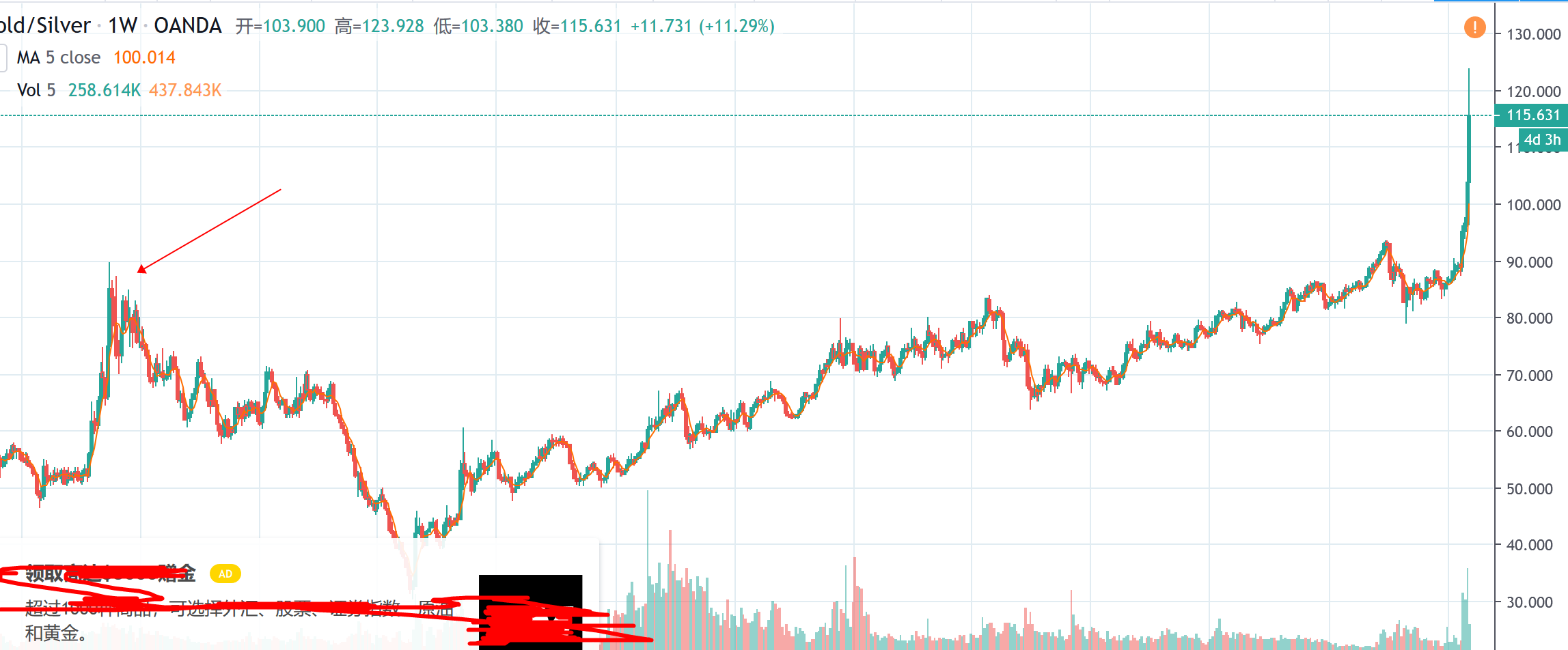 错误2:类比错误1,过去的白银补涨行情仍是建立在可控的情况下,金银比在区间内震荡。人类社会经历着前所未有的时代,没有可以参考的历史,旧有的体系正在崩坏,金银比已经突破天际。在极度恐慌中用白银作为避险标的错误