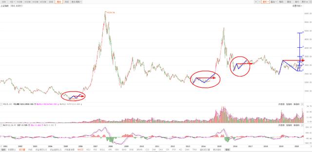 上证指数在历史上每次走出周线级别的趋势反转,后面都会有一波不错的涨幅度,6124、5178、3587都是从周线反转开始的,最近十几年的时间里,只要出现周线反转,股市就会有一波不错的表现,这是因为周线级别的结构已经具备相当的稳定性,一般的消息面不会对这个级别形成多大的影响,趋势只要形成,就会顺势发展下去。所以,周线级别出现这种结构时,成功率是很高的。