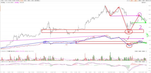 以上三点区别 分别对应图中红色,粉色和绿色笔的部分,在图中看的更加明显。如果这些细节都看清了,再结合黄金白银大级别结构,接下来黄金白银的走势不难判断吧,黄金很大概率是依托这个60分钟中枢,做出更大级别的中枢震荡,而白银继续自己的主升行情。